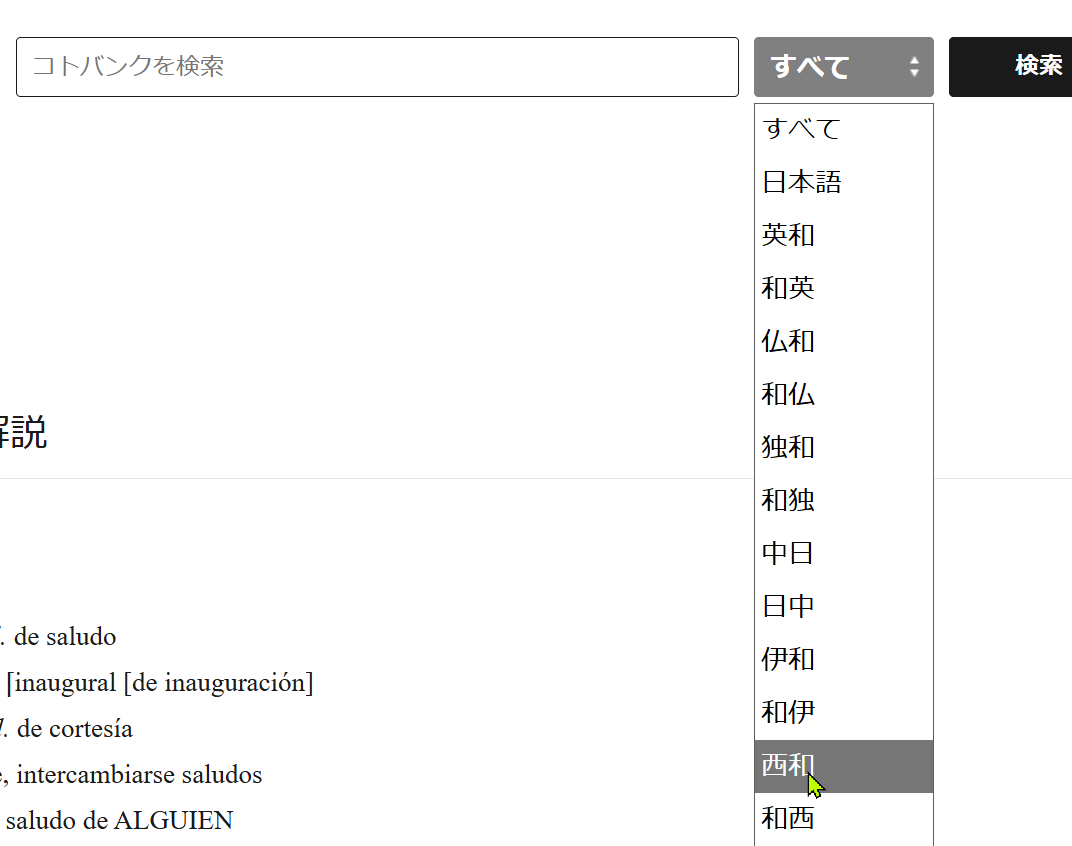 En el fondo esta web es un compendio de UN MONTÓN de diccionarios oficiales japoneses en digital (ojalá dure mucho). Es por eso que el buscador es un poco triqui: Si queréis buscar una palabra en castellano para ver su versión japonesa (si existe), configurar el buscador de la siguiente manera (Seleccionar en el combo 西和):